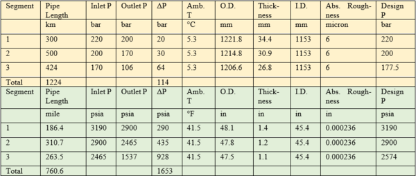 En los previos PDM hemos discutido los varios parámetros que están disponibles en el dominio público [3] y presentados en la Tabla 1. Nord Stream 1 posee dos (2) líneas paralelas, y cada una de ellas posee la capacidad para transportar en gas desde Rusia hasta Alemania a un caudal de 75.34 millones de PCSestd m3/día (2660.6 MMPCSD).