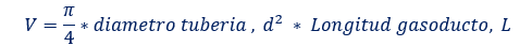 La tubería NSI igual puede ser aplicada para estimar los requerimientos de almacenamiento de gas, cuando este no se aplica para transporte. La metodología aplicada para estimar el volumen en metros cúbicos de gas (PC).