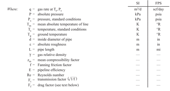 En este estudio, dos ecuaciones estándar derivadas de la ecuación básica de flujo considerando las condiciones ponderadas han sido aplicadas para estimar la capacidad de la línea NSI. Estas fórmulas son las ecuaciones Básica y AGA (American Gas Association), las cuales incorporan un factor de fricción “f”. Estas relaciones se presentan en [4].