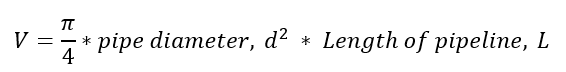 Taking the internal diameter of the pipeline as 1.153 m (3.78 ft) and pipeline length of 1 224 000 m (4 015 748 ft), the pipeline volume is 1 277 997 m3 (12 578 711 ft3).