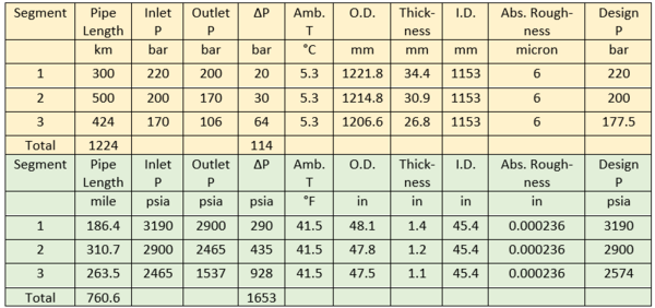 Table 1. Pipeline Specifications in SI and FPS Units
