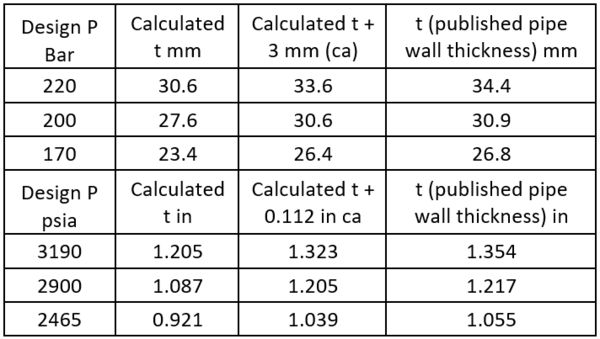 Pipe wall thickness calculation methodology using Barlow’s formula also shows good agreement with that of published data.