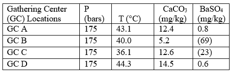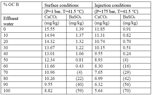 The results of the computer scaling study by Salman et. al. [3] are reported below. None of the cases modelled below predicted any CaSO4 or SrSO4 scales and these are not discussed further.