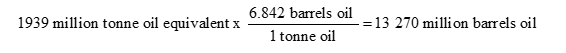 In 2018, 85% of the energy consumed in the U.S. was hydrocarbon based. Roughly 1939 million tonnes of oil equivalent of US energy demand is hydrocarbon based – it should be noted that a tonne of oil is roughly equivalent to 6.84 barrels of oil. Thus, the hydrocarbon energy consumed is equivalent to 13,270 million barrels of oil.