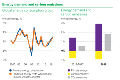 China, the US, and India accounted for more than two-thirds of the global increase in energy demand – with the US consumption expanding at its fastest rate in 30 years. Renewables grew by 14.5% slightly below their historical average.