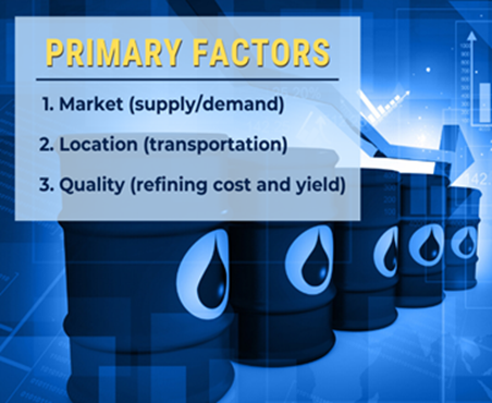 The first four items in the above list currently have the greatest effect on crude oil price. Reserves will only exert an influence on price when they are insufficient to support the desired worldwide production rate. Supply and demand must include both crude oil and petroleum products made from it. Crude oil quality reflects the products that can be refined from a particular crude oil and the cost to the refiner to do so. Location will determine the transportation cost to move crude oil and/or petroleum products from the point of production/refining to the customer. Reliability is controlled by production rate and productive capacity, while availability refers to reserves.