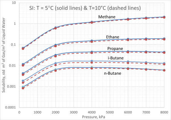 In Part 1 of this series, we will focus on the solubility of light hydrocarbon gases such as CH4, C2H6, C3H8, iC4H10, and nC4H10. We will review and present example available experimental solubility data and a thermodynamic model. For the case study, we will present diagrams to show the effect of temperature and pressure on the solubility of these light hydrocarbon gases in water.