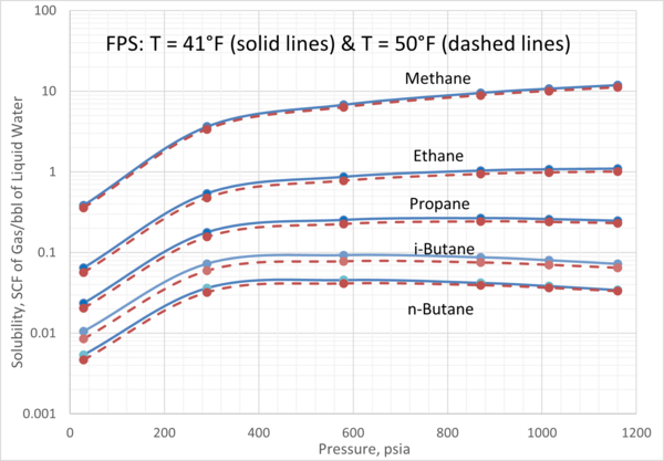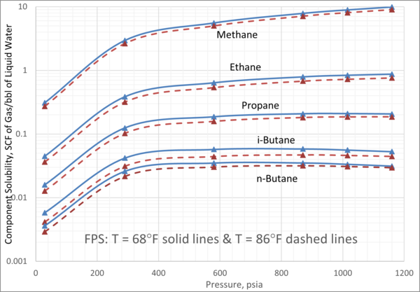 1. For a given pressure and temperature, methane has the highest and n-butane has the lowest solubility in the aqueous phase.