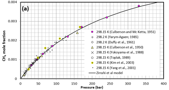 - Zirrahi, M., Azin, R., Hassanzadeh, H., Moshfeghian, M. “Mutual solubility of CH4, CO2, H2S, and their mixtures in brine under subsurface disposal conditions,” Fluid Phase Equilibria, Fluid Phase Equilibria 324, 80–93. 2012