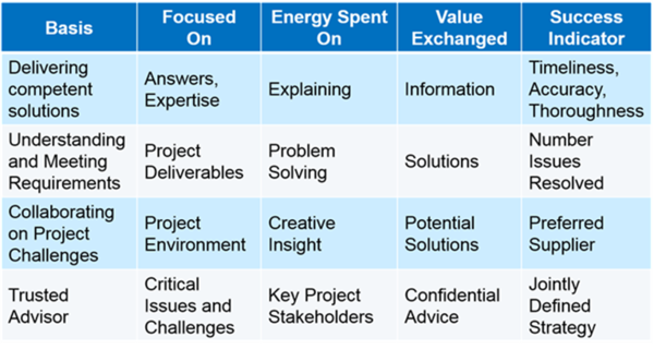 Developing a healthy relationship with all project stakeholders, especially the client and/or project owner, helps them accept your credibility when passing on good or bad news. Without a good relationship, your news can evoke skepticism or even hostility. All relationships are built on trust and run at different “levels”. At the beginning level, the basis of the relationship focuses simply on answers. At the deepest level, the players share concern for critical project issues and challenges.