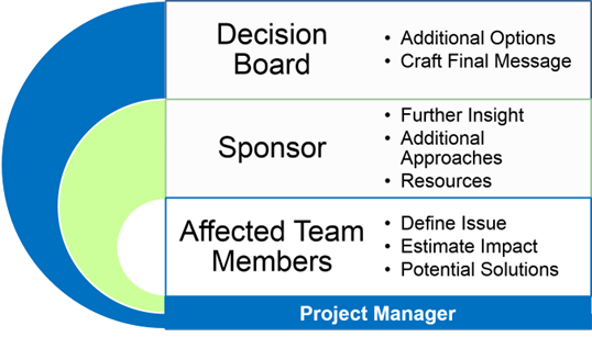 Communicate with your decision board after your sponsor is consulted, proposed solution(s) are formulated, and impact to cost, schedule and quality are quantified.