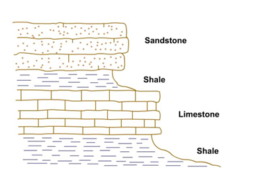 Figure 1  Layered rock sequence illustrating strata of sandstone, shale, and limestone.