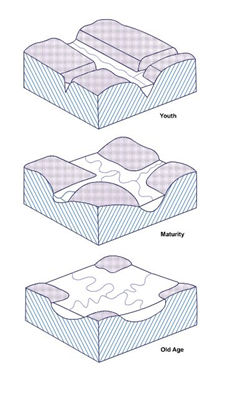 Erosion occurs in several ways, all of which are involved in reducing the landscape to equilibrium, where erosion and deposition are offsetting processes. The process of erosion is important to the creation of working petroleum systems because, via erosion, sedimentary materials are derived, transported, concentrated, and deposited to form source beds, reservoir rocks and reservoir seals.