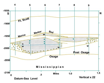 Figure 8 Northeast-Southwest cross-section across Figure 7. From Walters, Gutru, and James, 1979. Permission to publish by the Tulsa Geological Society.