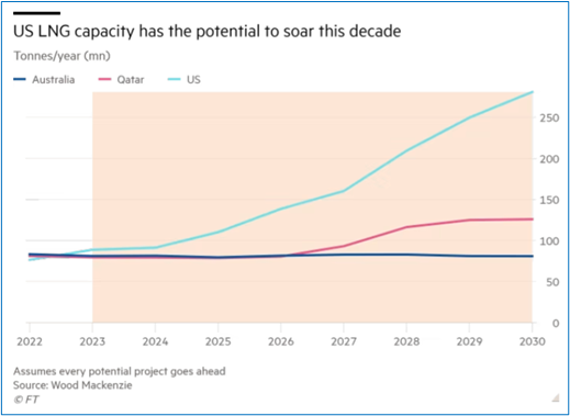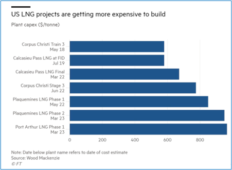 2. “Rising costs and competition threaten US boom in LNG projects”, McCormick, M., financial Times, 4/17/23.