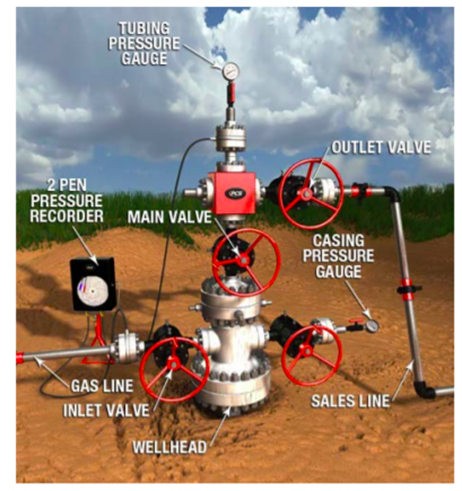 Figure 10. A typical Gas – Lift Well-Head Showing all pertinent connections [12]