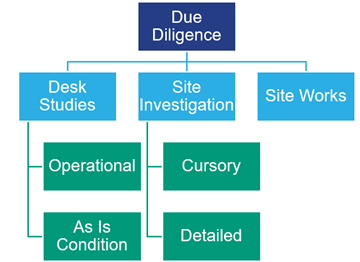Another way to show this can be seen in Figure 6. For better understanding, desk studies and site investigation can be broken down into two categories. The idea is to make due diligence easier to understand which helps us assign resources to each of these tasks.